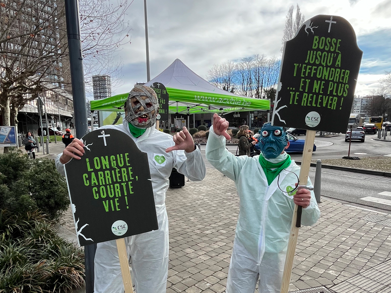 En amont de la manifestation nationale du 12 mars, la CSC a organisé une série d’actions dans les régions pour rappeler ses revendications face aux mesures du gouvernement Arizona et Azur.