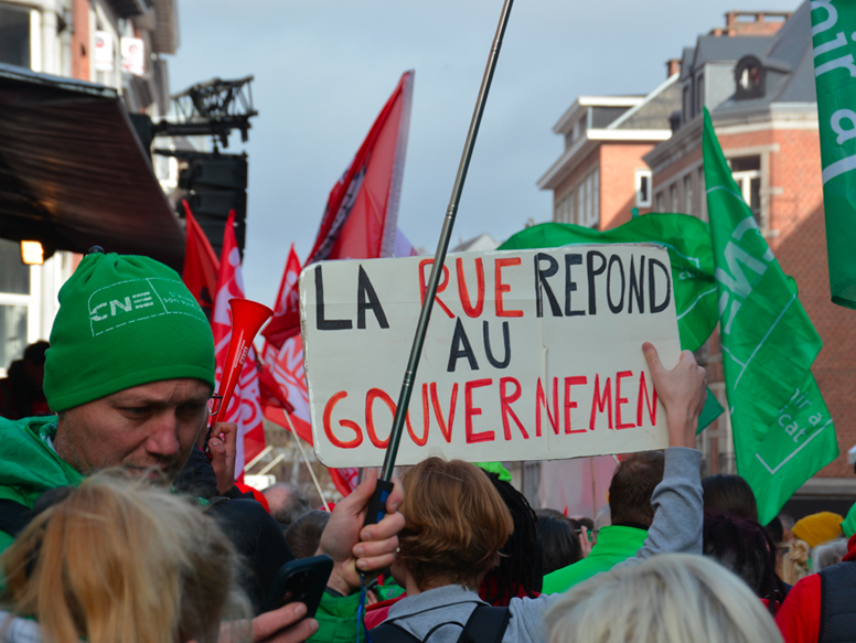 À Namur, fief du vice-Premier ministre Maxime Prévost, 800 militants ont fait du bruit pour dénoncer le rôle central de son parti dans l’élaboration des mesures particulièrement graves à l’encontre des droits sociaux. La veille, une délégation syndicale CSC-FGTB-CGSLB a rencontré M. Prévot pour lui porter nos revendications, notamment la protection des femmes cohabitantes et l’obtention de moyens pour l’insertion socioprofessionnelle.